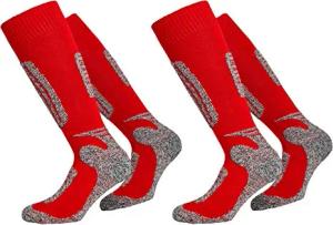 2 Paar warme Pistensauser Skisocken mit Schafwolle und einer Spezial-Polsterung (Rot, 35/38)