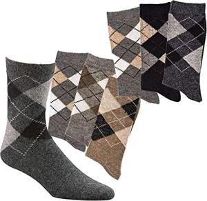 6 Paar warme,weiche Socken mit Alpaka-Wolle und Karo Dessin für Damen und Herren mit zusätzlicher Garantie (Farben sortiert, 43/46)