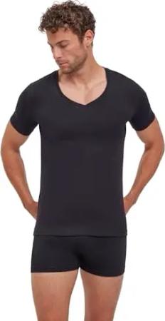 Herren Unterwäsche Daily Comfort Multipack Deep V Neck M S/s Ts Baumwolle atmungsaktiv 2 Stück, Schwarz Black 3000, S