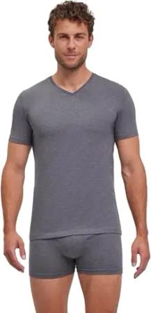 Herren Unterwäsche Daily Comfort Multipack V Neck M S/s Ts Baumwolle atmungsaktiv 2 Stück, Grau Dark Grey Heather 3278, L