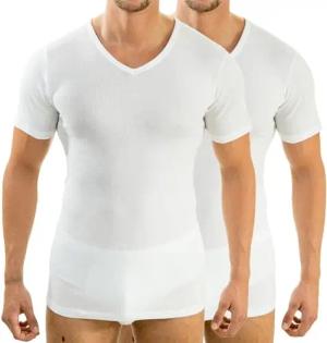 16488 2er Pack Herren Kurzarm Business Unterhemd mit V-Ausschnitt Shirt aus Baumwolle/Modal, Größe:D 7 = EU XL, Farbe:weiß