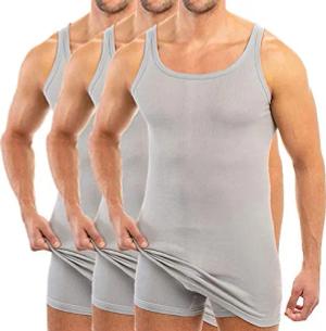 3007 3er Pack extralanges Herren Unterhemd (+10 cm) Tank Top aus 100% Bio-Baumwolle, Größe:D 5 = EU M, Farbe:grau