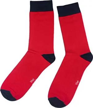 Herren Socken Business Casual Funny Socken mit klassischen Muster und Farbvariationen Baumwolle (43-46, Rot-Marine Uni)