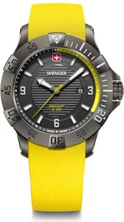 Herren Armbanduhr Seaforce, Ø 43 mm, Swiss Made, Analog Quarz, Wasserdicht bis 200 m, Silikon-Armband, Schwarz/Gelb, 01.0641.145