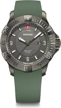 Herren Armbanduhr Seaforce, Ø 43 mm, Swiss Made, Analog Quarz, Wasserdicht bis 200 m, Silikon-Armband, Schwarz/Grün, 01.0641.143