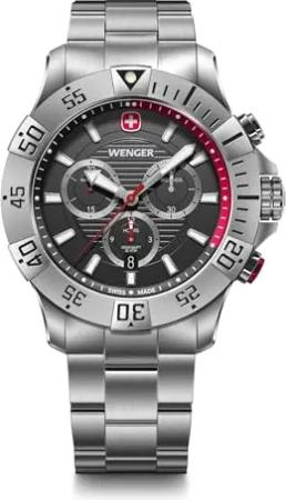 Herren Armbanduhr Seaforce Chronograph Ø 43 mm, Swiss Made, Analog Quarz, Wasserdicht bis 200 m, Edelstahl-Armband, Schwarz/Silber, 01.0643.123