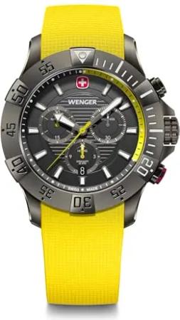 Herren Armbanduhr Seaforce Chronograph Ø 43 mm, Swiss Made, Analog Quarz, Wasserdicht bis 200 m, Silikon-Armband, Schwarz/Gelb, 01.0643.129