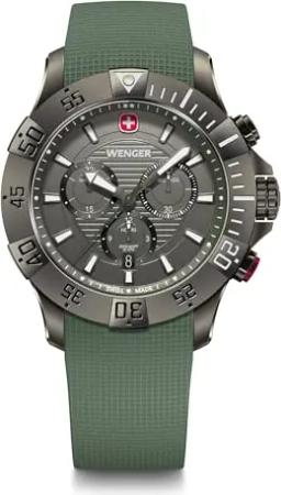 Herren Armbanduhr Seaforce Chronograph Ø 43 mm, Swiss Made, Analog Quarz, Wasserdicht bis 200 m, Silikon-Armband, Schwarz/Grün, 01.0643.127