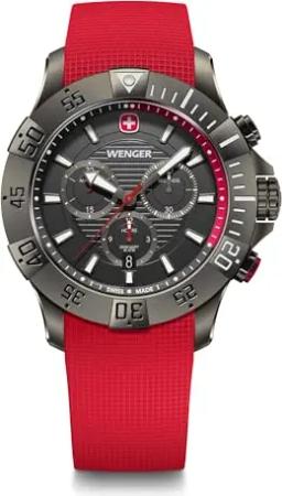 Herren Armbanduhr Seaforce Chronograph Ø 43 mm, Swiss Made, Analog Quarz, Wasserdicht bis 200 m, Silikon-Armband, Schwarz/Rot, 01.0643.128