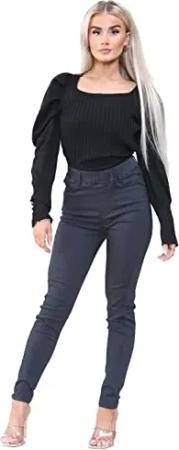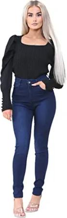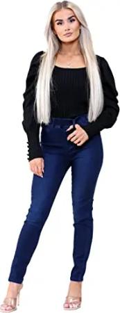 Damen-Jeans mit hoher Taille, Skinny Stretch, elastische Taille, Jeggings, Denim-Jeans, dunkelblau, 38
