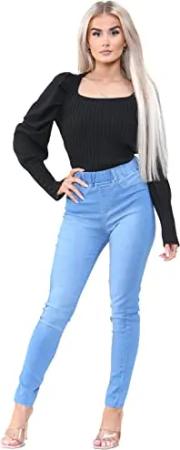 Damen-Jeans mit hoher Taille, Skinny Stretch, elastische Taille, Jeggings, Denim-Jeans, hellblau, 34