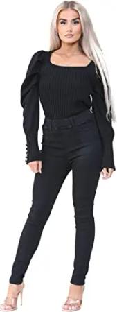 Damen Jeans Skinny Stretch Jeans Hohe Taille Denim Hose, Schwarz , 44