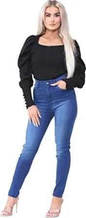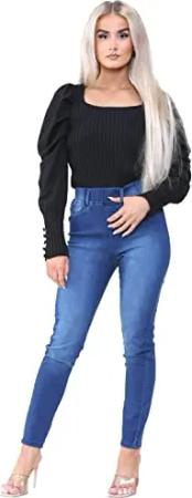 Damen-Jeans mit hoher Taille, Stretch, elastische Taille, Jeggings, Denim-Jeans, blau, 38