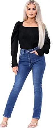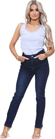 EZL417 Damen Jeans Skinny Stretch Ripped Hose Damen Denim Slim Fit Hose mit Rissen Taille Größen 36-48, blau, 34