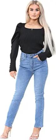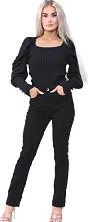 EZL417 Damen Jeans Skinny Stretch Ripped Hose Damen Denim Slim Fit Hose mit Rissen Taille Größen 36-48, Schwarz , 36