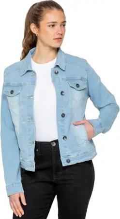 Designer-Jeansjacke für Damen, Stretch, lässig, Knopfleiste, Western-Jeansmantel, hellblau, 46