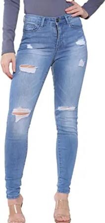 EZL417 Damen Jeans Skinny Stretch Ripped Hose Damen Denim Slim Fit Hose mit Rissen Taille Größen 36-48, hellblau, 38