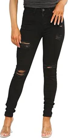 EZL417 Damen Jeans Skinny Stretch Ripped Hose Damen Denim Slim Fit Hose mit Rissen Taille Größen 36-48, Schwarz , 38