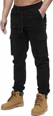 Herren Cargo Jogginghose Sweathose Casual Gym Regular Fit Jogginghose, Schwarz , 36-41