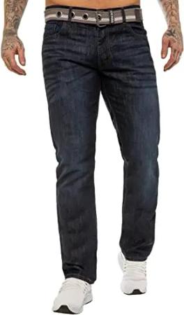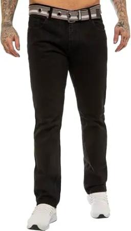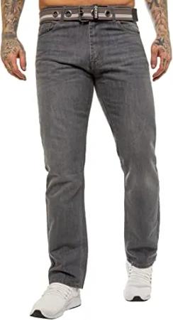 Herren-Denim-Jeans, normale Passform, gerades Bein, 5 Taschen, inklusive kostenlosem Gürtel, Blau, Schwarz, Grau, EU, grau, 34 W/30 L