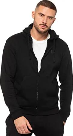 Herren-Kapuzenpullover mit Reißverschluss, normale Passform, lange Ärmel, Schwarz , S