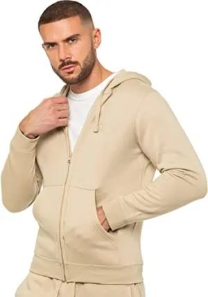 Herren-Kapuzenpullover mit Reißverschluss, normale Passform, lange Ärmel, stone, XL