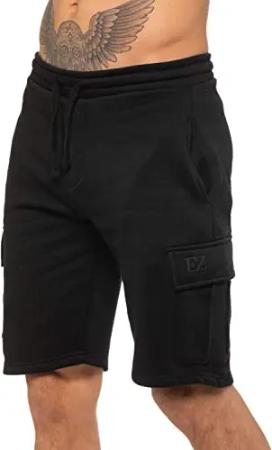 Herren Shorts EZS404 Raw Combat Cargo Pockets Casual Knielang Denim Half Pants, Schwarz , 34W