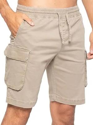 Herren-Shorts, Cargohose, lässig, Baumwolle, Sommer, Stretch-Shorts, normale Passform mit Taschen, beige, S