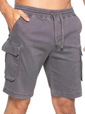 Herren-Shorts, Cargohose, lässig, Baumwolle, Sommer, Stretch-Shorts, normale Passform mit Taschen, grau, L