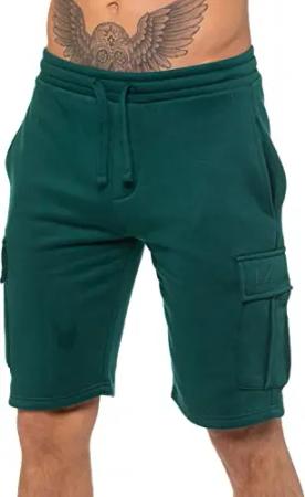 Herren-Shorts, Cargohose, lässig, Fleece, Fitnessstudio, Training, Jogger, halbe Hose mit Taschen, grün, L