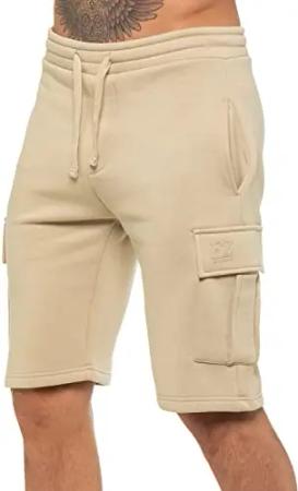 Herren-Shorts, Cargohose, lässig, Fleece, Fitnessstudio, Training, Jogger, halbe Hose mit Taschen, stone, XL