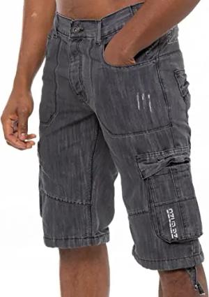 Herren-Shorts EZS404 Raw Combat Cargo Pockets Casual Knielang Denim Halbhose, dunkelgrau, 34W