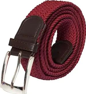 Herren-Stretch-Gürtel für Damen, elastisch, gewebt, verstellbar, geflochtene Metallschnalle, Gürtel, burgunderfarben, Small/Medium