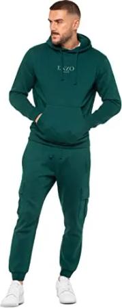 Herren Trainingsanzug mit Kapuze aus Fleece, Sweatshirt, Überkopf, Hoodie, Pullover, lässiger Fleece, Cargo-Jogginghose, Sweatpants Set, grün, XL