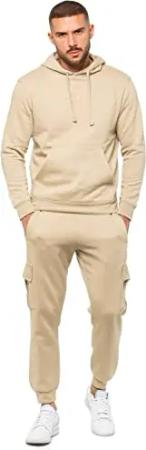 Herren Trainingsanzug mit Kapuze aus Fleece, Sweatshirt, Überkopf, Hoodie, Pullover, lässiger Fleece, Cargo-Jogginghose, Sweatpants Set, stone, M