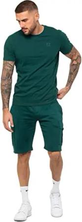 Herren Trainingsanzug T-Shirt Shorts Set Regular Fit Einfarbig Tee Rundhals Top Casual Fleece Cargo Shorts, grün, M