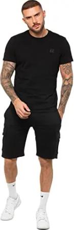 Herren Trainingsanzug T-Shirt Shorts Set Regular Fit Einfarbig Tee Rundhals Top Casual Fleece Cargo Shorts, Schwarz , XL