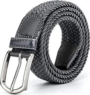 Stretchgürtel für Herren, elastisch, gewebt, verstellbar, geflochtene Metallschnalle, grau, Small/Medium