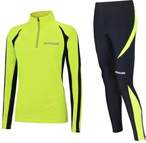 Damen Winter Laufset Thermo Pro Line Laufhose Lang Laufshirt Langarm Sweatshirt Fleece Funktionsshirt Sport Langarmshirt Jogginghose Leggins - schwarz-neon - XXXL