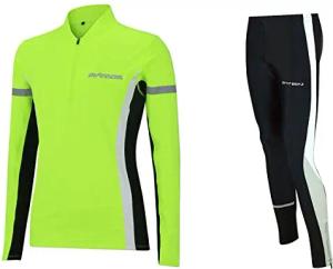Herren Winter Laufset Thermo Laufhose Lang Laufshirt Langarm Sweatshirt Fleece Funktionsshirt Sport Langarmshirt Jogginghose Leggins - schwarz-neon - XXXL
