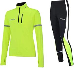 Herren Winter Laufset Thermo Laufhose Lang Laufshirt Langarm Sweatshirt Pro Fleece Funktionsshirt Sport Langarmshirt Jogginghose Leggins - neon - M