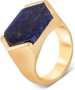 Abyssum Ring | Kompass Karte Nord Nautisch Ring Herren Edelstahl Designer Gold - Archat Blau - US 8