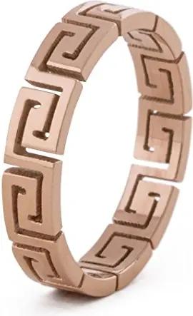 Argius Ring | Eleganter Damen Ring mit Griechischen Ornament Muster | Design-Ring für Frauen und Herren Edelstahl Filigran Mäander - Rosegold - US 11
