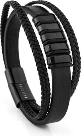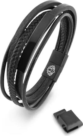 Fabula Lederarmband | Armschmuck Frauen Herren Edelstahl Männer Armband - Schwarz - Schwarz 23cm