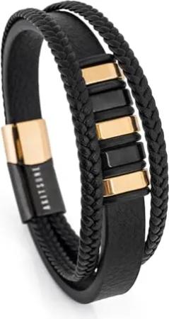 Fabula Lederarmband |Armschmuck Frauen Herren Magnetverschluss aus Edelstahl Männer Armband - Gold - Schwarz 21cm