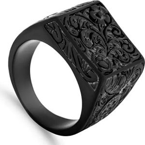 Floris Ring | Design-Ring Frauen Herren Edelstahl Groß Floral Blumen Ornament Siegel - Mattschwarz - US 8