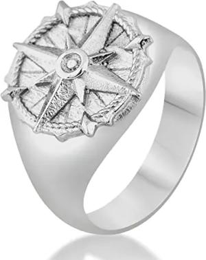 Guidance Ring | Kompass Karte Nord Nautisch Ring Herren Edelstahl Designer Antik-Silber - US 9