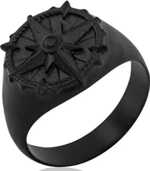 Abyssum Ring | Kompass Karte Nord Nautisch Ring Herren Edelstahl Designer Mattschwarz - Schwarz- US 12