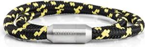 Mare Segeltau Nylonarmband | 5 mm breit | Magnetischer Kapselverschluss Doppelt Gewickelt Damen Herren Maritim - Silber-Schwarz-Gelb 41 cm