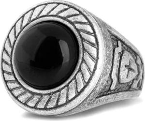 Mortis Ring | Ornament Design-Ring Frauen Herren Edelstahl Groß Kreuzfahrer Siegel - Silber - US 7